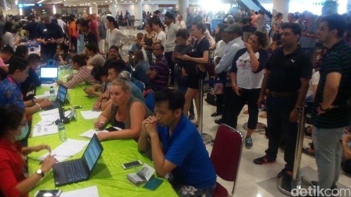 Para turis itu sementara belum bisa kembali ke negaranya. Mereka tertahan akibat penutupan Bandara Ngurah Rai Bali.