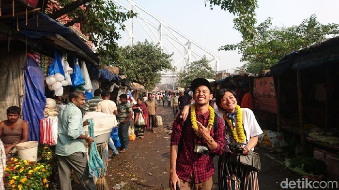 Tujuan pertama penjelajahan Kota Kolkata yakni menikmati suasana pagi di pasar bunga Mullick Ghat dan melihat lanskap kota dari Jembatan Howrah.