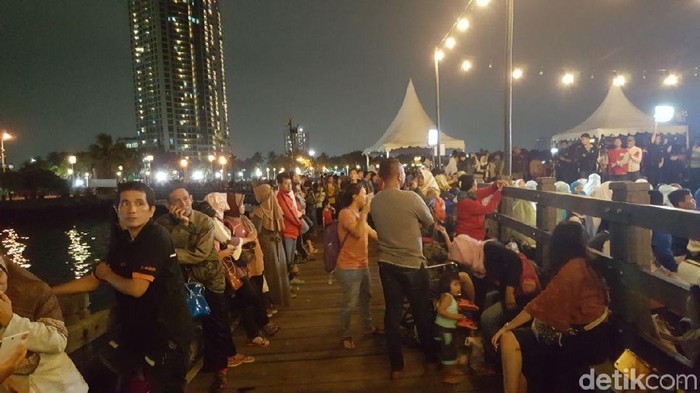 " Deg- degan pastinya. Saya udah dari sore tadi nungguin. Habis jogging langsung menuju pantai," ujar Elika (18) kepada detikTravel, Rabu (31/1/2018) di Dermaga Hati Ancol, Jakarta.
