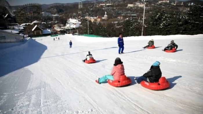 Taman rekreasi populer di Korea, Everland, punya wahana spesial setiap musim dingin tiba. Salah satunya Snow Buster, di mana traveler bisa meluncur naik kereta dari atas jalur yang mirip perbukitan salju.