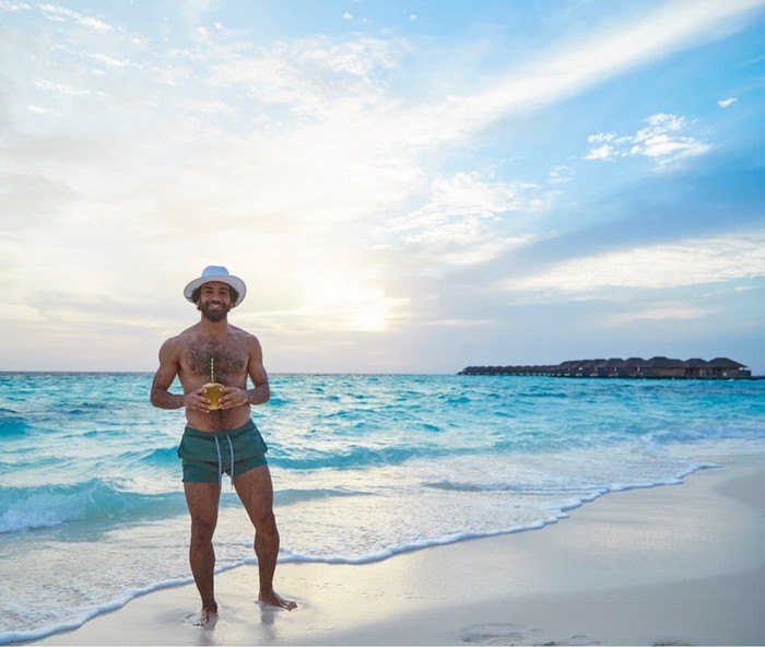 Pantainya berpasir putih nan landai. Dengan langit biru bersih, tampaknya Mohamed Salah benar-benar menikmati liburannya sebelum kembali lagi bertanding di Premier League.