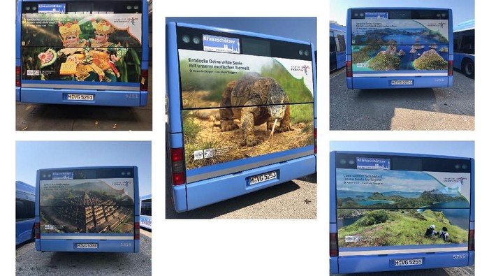 Sejak awal September lalu, sejumlah poster objek wisata Indonesia terpampang di lima bis di Kota Munich, Jerman. Bis-bis ini beroperasi dari Bandara Munich ke beberapa tujuan di Kota Munich. Pemasangan poster akan berlangsung selama dua bulan hingga akhir Oktober mendatang.