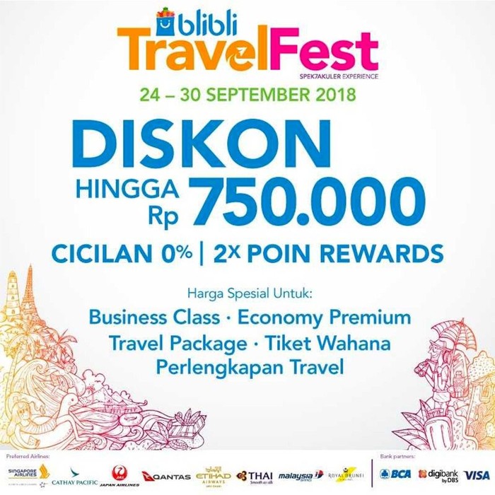 Seluruh promo Blibli TravelFest dapat diakses melalui situs resminya. Tahun ini Blibli TravelFest bekerja sama pula dengan Tiket.com, TX Travel, dan Amazing Journey. (bnl/fay)