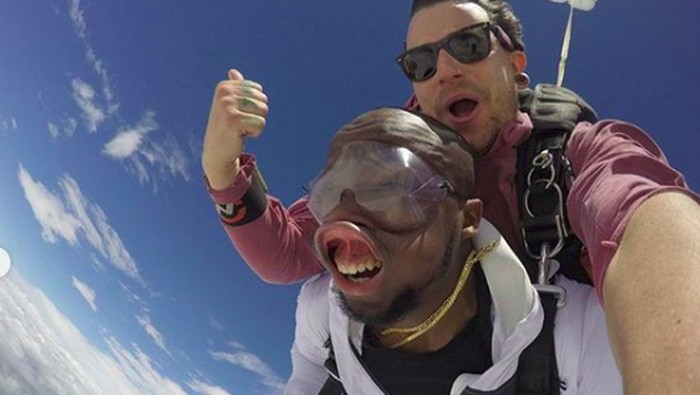 Beberapa saat setelah lompat, angin kencang menghantam Addo, hingga bibirnya terbuka sangat tinggi, hingga menutupi hidungnya. Ekpresi lucu ini dia bagikan di Instagram, dan membuat warganet tertawa.
