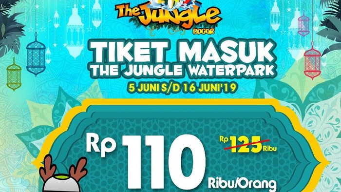 "Selama libur lebaran ini kami akan memberlakukan harga khusus tiket masuk yaitu hanya Rp 110.000 dari harga seharusnya Rp 125.000. Harga tiket tersebut sudah termasuk semua permainan di wahana air, kecuali cinema 4D," jelas Marcomm Manager The Jungle Waterpark Bogor, Minia Arpita Barus.