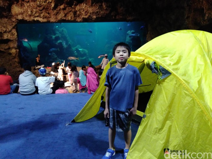 Usai diedukasi tentang satwa dan biota laut di Ocean Dream Samudera selama seharian, anak-anak diajak untuk lomba mendirikan tenda pada malam harinya. Selanjutnya mereka juga akan berburu harta karun, bakar-bakar daging barbeque, dan tidur di tendanya masing-masing di area akuarium.