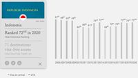 Bagaimana dengan Indonesia? Henley Passport Index mencatat paspor Indonesia ada di peringkat 72 dalam daftar paspor terkuat dunia saat ini, lebih baik satu posisi dari daftar sebelumnya. Pemegang paspor Indonesia memiliki akses bebas visa ke-71 negara.