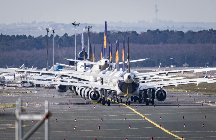 Di Jerman, Lufthansa Group mengurangi kapasitas tempat duduk pada rute jarak jauh hingga 90%. Total 23.000 penerbangan jarak pendek, menengah, dan jauh dibatalkan dari tanggal 29 Maret-24 April.