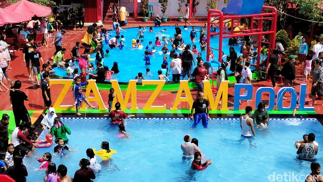 "Kita prokes dilakukan ketat, cuci tangan, cek suhu, masker itu wajib. Kita juga batasi jumlah pengunjung hanya 1.300 orang di dalam, dari kapasitas bisa lebih dari 4.000 orang," jelas Zonatun Umbara pengelola Zam-zam Pool.