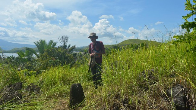 Papan batu dan menhir ini berada di lokasi paling tinggi di situs Khulutiyauw.