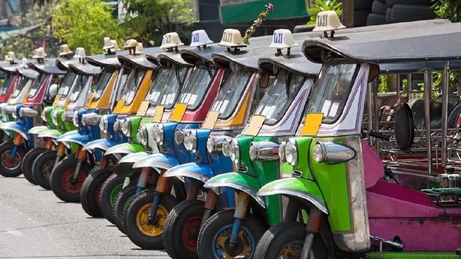 Tuk-tuk yang biasa menjadi tunggangan wisatawan di Thailand dikandangkan selama pandemi. Belum sempat bangkit, kendaraan khas negeri gajah putih itu makin hilang dari jalanan menghindari varian Delta virus Corona.