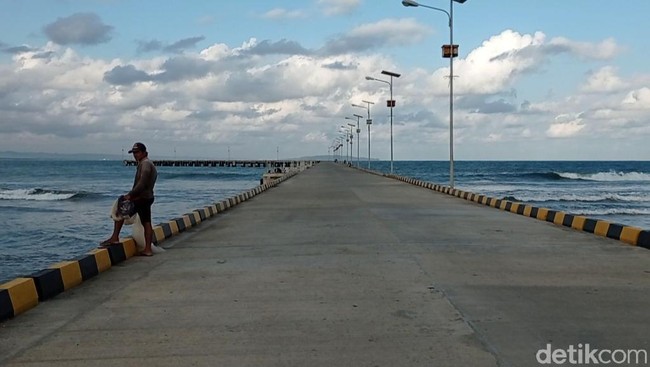 Pantauan detikcom, Minggu (31/7/2021) di sekitar lokasi Pelabuhan Pangandaran sedang dilakukan pengerjaan beton pemecah ombak atau break water.