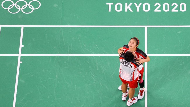 Greysia Polii/Apriyani Rahayu meraih emas cabor bulutangkis Olimpiade Tokyo 2020 nomor ganda putri. Mereka mengalahkan Chen Qing Chen/Jia Yi Fan dua gim langsung 21-19 dan 21-15.