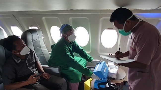 "Vaksinasi di atas pesawat ini agar minat pelaku wisata lebih tinggi dan terbukti hari ini targetnya 300 peserta tapi yang datang mencapai 500 orang," kata Toto saat diwawancarai detikcom, Senin (9/8/2021).