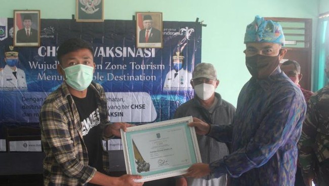 Acara diakhiri dengan pemberian sertifikat CHSE kepada beberapa pelaku wisata yang telah hadir dalam sosialisasi tersebut.
