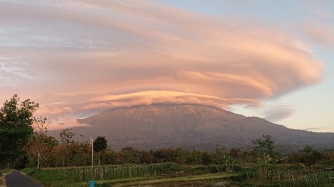 Selain itu, jelas dia, awan bertopi terjadi adanya gelombang gunung atau angin lapisan atas yang cukup kuat dari suatu sisi gunung.