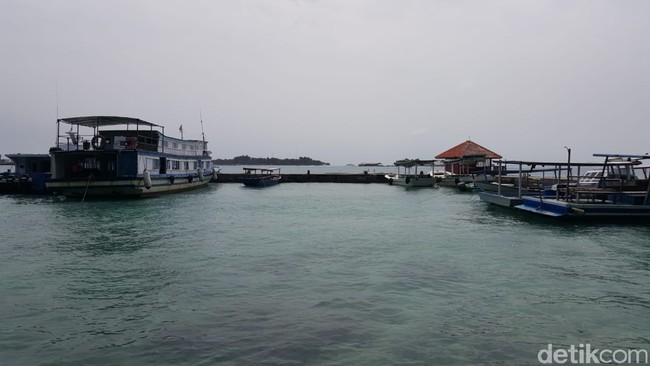 Pulau Pramuka, salah satu tujuan berlibur terdekat warga DKI sepi tanpa wisatawan. Dermaga kapal begitu sepi, namun perairan sekitarnya menjadi bersih dan jernih.