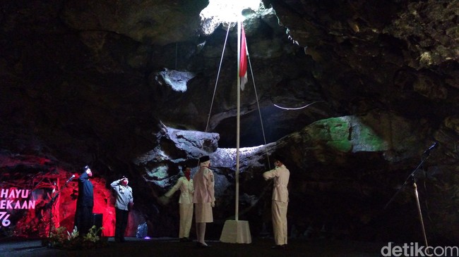 Upacara Bendera memperingati HUT ke-76 RI digelar berbeda pada salah satu obyek wisata di Purbalingga, Jawa Tengah. Pasalnya upacara tidak digelar di lapangan atau tempat terbuka melainkan di dalam goa.