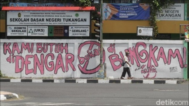 "Kondisi ini menjadikan sebagian masyarakat mencari media lain untuk menyuarakan pendapatnya dengan cara mengekspos ke publik baik lewat media online maupun offline termasuk mural," terang Sandi.