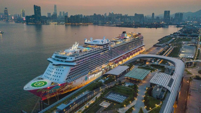 Kapal pesiar Genting Dream, sepanjang 335 meter, biasanya dapat menampung lebih dari 3.000 orang. Namun kini, operator menutup pemesanan tiket saat separuh kapasitas terpenuhi, bahkan staf pemeriksa syarat perjalanan terlihat lebih banyak.