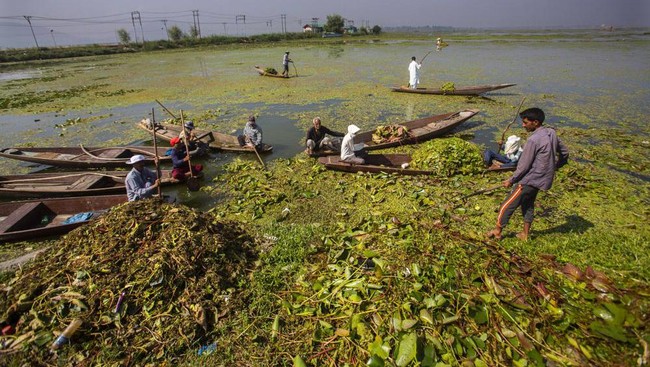 Diberitakan AP News, Danau Dal yang terkenal di Srinagar, kota utama di Kashmir, India kini dipenuhi oleh lumpur dan limbah. Meninggalkan danau indah yang mendominasi kota, menarik puluhan ribu turis di setiap tahunnya.