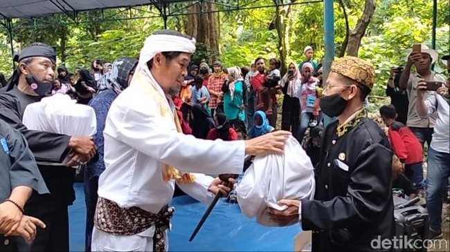 "Tadi kita diutus ke Cibulan mengambil air dari sumur 7. Jadi dari tujuh sumur diambil semua airnya, dimasukkan ke dalam kendi," kata Jaja Abdurrahman sebagai sesepuh Desa Babakanmulya saat diwawancarai detikcom.