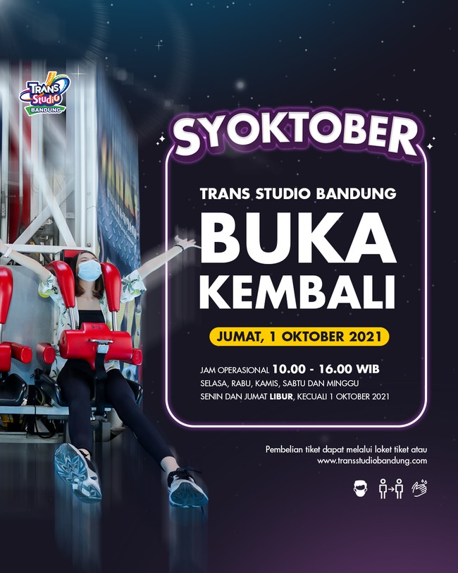 Memasuki bulan baru Oktober kali ini, Trans Studio Bandung juga mengawali langkah baru. Sebab, wahana bermain dengan beragam keseruan ini dibuka kembali per 1 Oktober 2021.