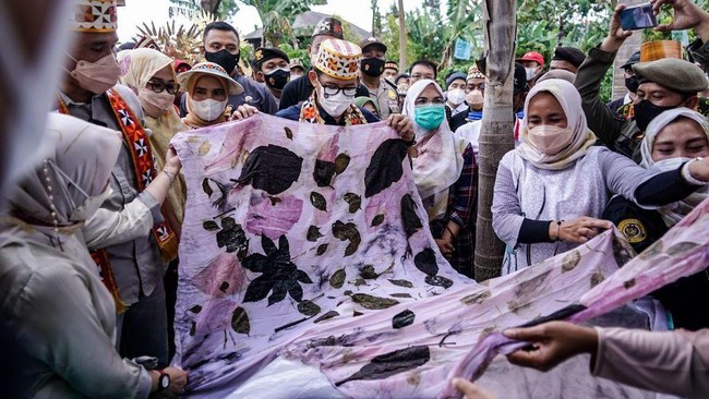 Menurut Sandiaga, hasil produksi fesyen eco print olahan daun kopi dan daun jati yang dilakukan oleh lima orang remaja berusia 15 tahun ini hasilnya cukup baik.
