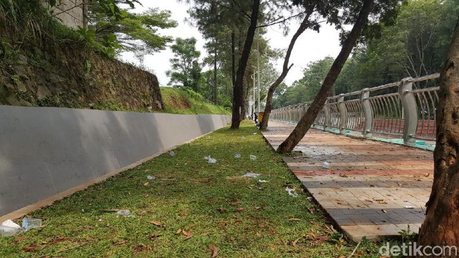Sayang sekali bukan, kawasan taman yang asyik ini dikotori oleh sampah? Boleh dong detikcom bilang gini, "padahal masuk ke taman gratis loh, parah! Seenaknya saja buang sampah. Beban petugas kebersihan saja!