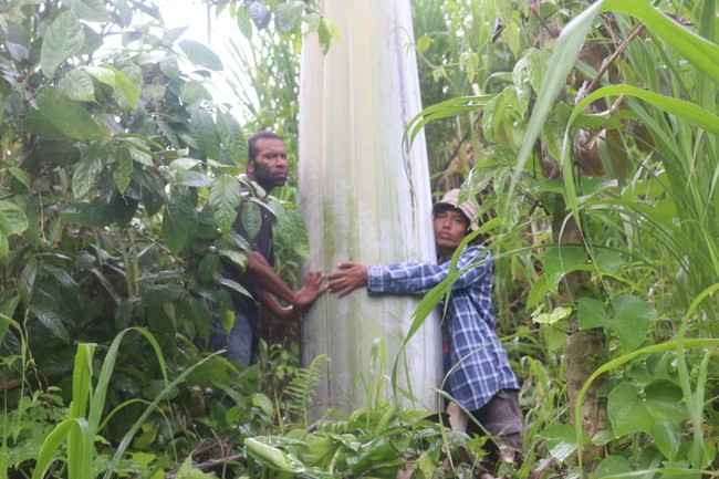 Di Papua ada pohon pisang raksasa Papua atau pisang Musa Ingens. Saking besar dan tingginya pohon ini, batangnya nggak bisa dipeluk satu orang!