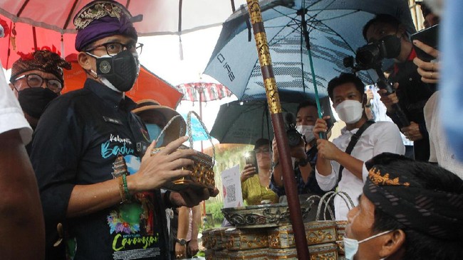 Dalam kunjungannya ke Bali, Menparekraf Sandiaga Uno sempat membeli 100 kerajinan tangan bernama Bokor dari penyandang disabilitas setempat.