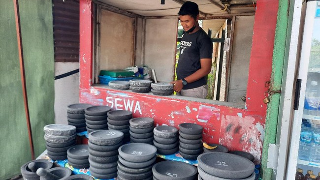 Kios cobek ini menjual cobek batu dengan berbagai ukuran mulai dari yang kecil, sedang, hingga besar. Untuk harganya, yang kecil dibanderol mulai Rp 30 ribu sedangkan yang paling besar RP 190 ribu.