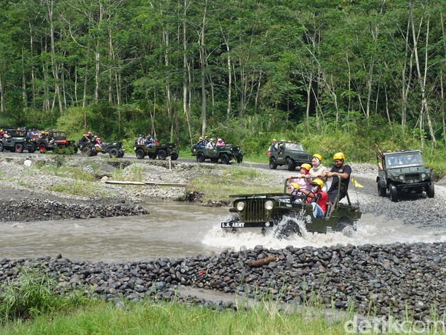 Pantauan detikcom di salah satu spot andalan jip Merapi yakni Kali Kuning, Cangkringan nampak ada puluhan armada jip yang hilir mudik mengangkut wisatawan. Para wisatawan nampak menikmati saat jip melaju di jalan batu dan sungai.
