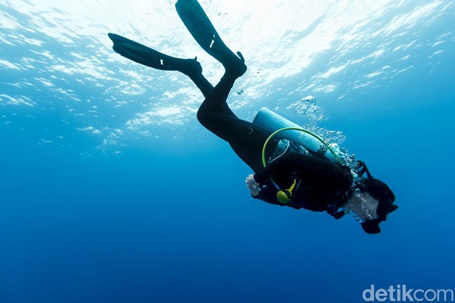 Dari angkasa Blue Hole memang tampak menggiurkan, tapi kedalamannya lebih dari 100 meter. Sementara area terdangkalnya sekitar 6 meter, yang diberi nama The Saddle.
