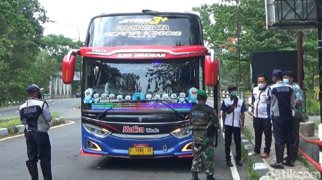 Pantauan detikTravel di rest area hutan bunder, Kapanewon Playen, Kabupaten Gunungkidul tampak petugas gabungan dari TNI, Polri, Dishub, Satpol PP hingga Dispar berjaga di pinggir jalan. Mereka memberhentikan dan mengecek bus pariwisata hingga kendaraan bus berukuran sedang.