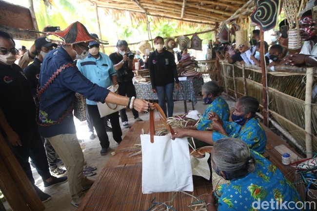 Seorang pengrajin anyaman dan Noken Arborek mencurahkan isi hatinya kepada Menparekraf Sandiaga Uno. Karena, barang kriya mereka kurang dikenal.