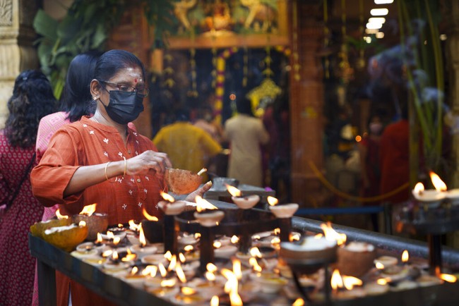 Saat Diwali, orang-orang menyalakan lampu minyak atau lilin sambil berpesta, berdoa, dan, menyalakan kembang api.