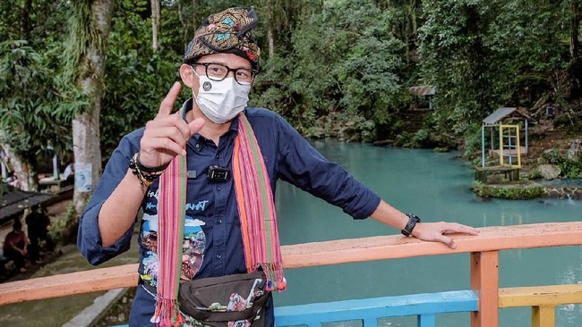 Menparekraf Sandiaga Uno berkunjung ke desa wisata Sesaot di Lombok Barat. Dia bertemu dengan bupati hingga makan bareng sate Bulayak khas Lombok.