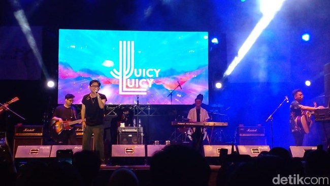 Band Juicy Luicy sukses memukau pendengarnya saat manggung di Makassar Festival Jazz, Sabtu (6/11/2021) malam. Band asal Indonesia ini menyanyikan sepuluh lagu di depan milenial Makassar.