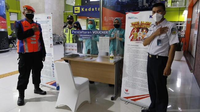Bentuk apresiasi tersebut dilakukan PT KAI dengan memberikan 11.000 voucher tiket KA Jarak Jauh kelas eksekutif dan ekonomi secara gratis di sejumlah area termasuk Daop 1 Jakarta. Adapun periode keberangkatan voucher tersebut mulai tanggal 8 s.d 30 November 2021 untuk keberangkatan menuju kota besar seperti, Bandung, Cirebon, Tegal, Solo, Yogyakarta, Surabaya dan Malang.