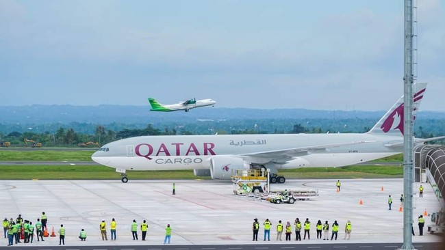 Jelang perhelatan World Superbike (WSBK) bulan ini, sejumlah logistik telah tiba di Mandalika Lombok. Diangkut dengan maskapai Qatar Airways.