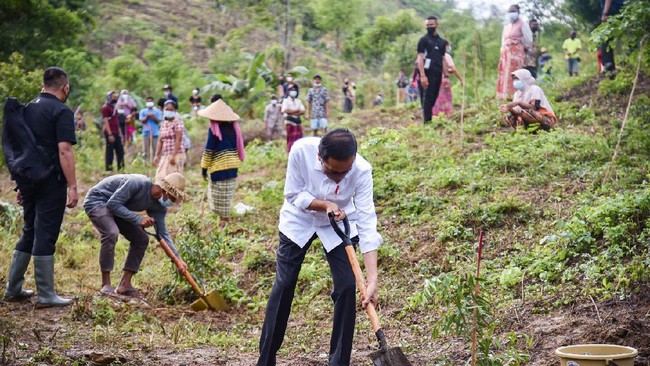"Saya pesan kepada masyarakat agar yang sudah ditanam ini dipelihara dan dijaga, agar nanti semuanya tumbuh dengan baik, dan memberikan dampak ekonomi kepada seluruh masyarakat yang berada di sekitar kawasan ini," kata Presiden Jokowi.