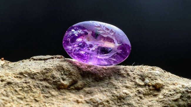 Dikutip dari BBC, batu berwarna ungu ini berfungsi sebagai stempel atau bisa dipakai juga sebagai cincin. Pada batu ini diukir gambar cabang tanaman dan burung.