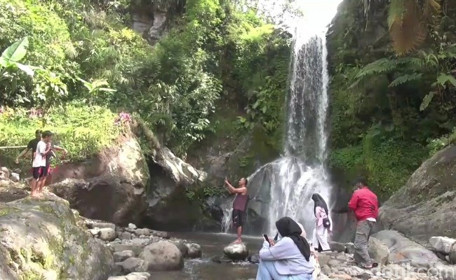 Air terjun ini memiliki ketinggian 15 meter. Meski tidak terlalu tinggi, namun cukup menyuguhkan pemandangan menyejukkan. Selain berselfie, wisatawan juga bermain air di bawah air terjun merasakan dinginnya air pegunungan yang berhulu di Gunung Slamet.