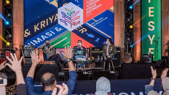 Pembahasan dilakukan dalam talk show di acara Pekan Puncak Apresiasi Kreasi Indonesia (AKI) 2021 di Gandaria City. Sandiaga bercerita kepada Arief Yahya dan Triawan Munaf tentang program AKI yang sudah digelar di 16 kota. Dia menutrkan, dalam pekan Puncak AKI 2021, Kemenparekraf menghadirka UMKM ekonomi kreatif terbaik dari 16 kota.