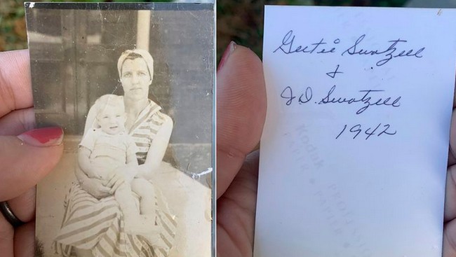 Saat diambil, ternyata kertas itu adalah selembar foto jadul. Di balik foto jadul itu, ada tulisan yang berbunyi 'Gertie Swatzell & J.D Swatzell 1942'. Foto jadul itu pun disimpan Katie.