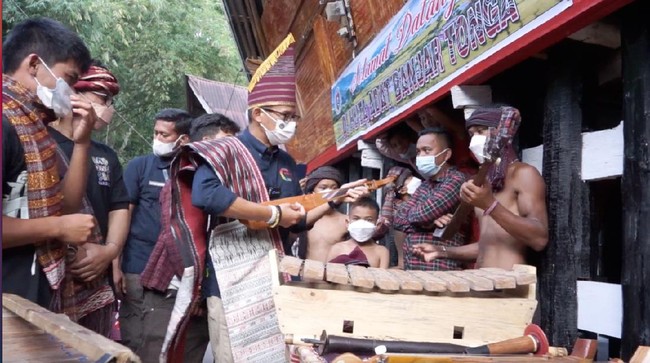 Dalam kunjungannya ke Desa Wisata Tipang di Sumatera Utara, Menparekraf Sandiaga menyampaikan apresiasinya pada sanggar budaya dan musik setempat.