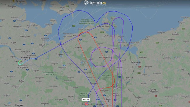 Pilot mengambil rute yang sangat khusus untuk membuat simbol hati. Garisya diambil oleh layanan pelacakan penerbangan FlightRadar24.