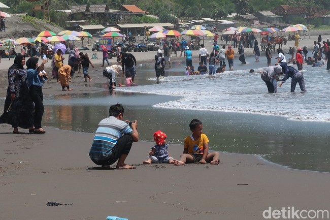 Sedangkan di Pantai Parangtritis sendiri tampak ribuan orang tengah berada di pinggir pantai, mulai dari bermain air, berswafoto hingga bermain motor roda empat. Tampak pula beberapa pedagang aksesori sibuk menjajakan kacamata.