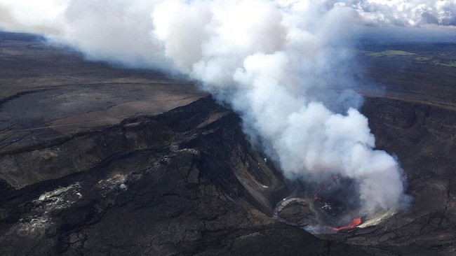 Mereka menyebut sang turis terjatuh di kawah gunung Kilauea, tepatnya di sebelah barat gardu pandang Uekahuna.